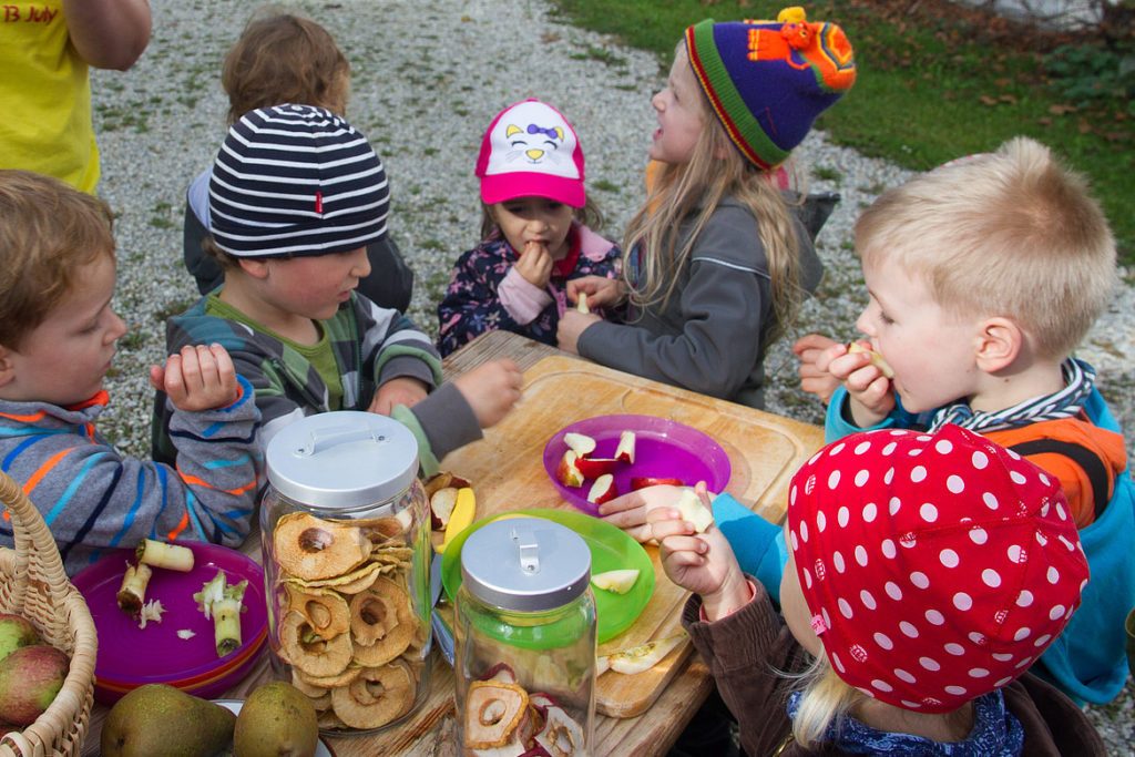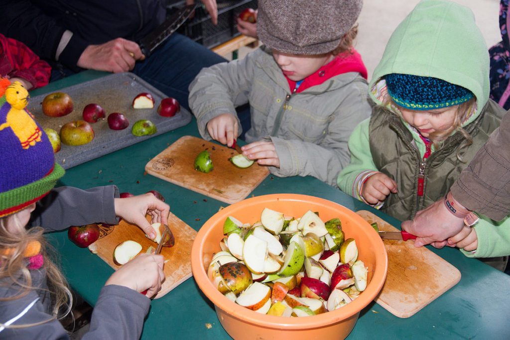 Im Oktober dürfen unsere Kinder bereits seit vielen Jahren gemeinsam Äpfel ernten und diese anschließend zu leckeren Apfelsaft verarbeiten. Das Apfelpressen ist für alle Kinder(t)räumer ein wunderschönes, erlebnisreiches und kulinarisches Abenteuer zu Beginn des Kindergartenjahres.