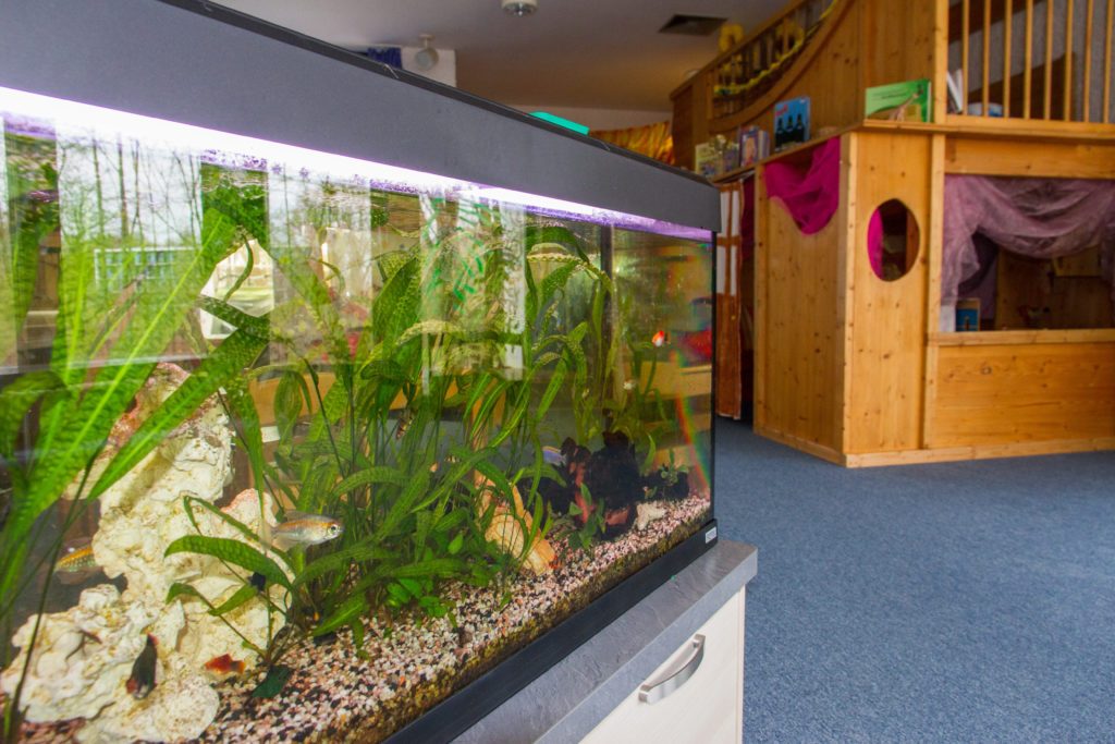 Zusätzlich ist ein im Jahre 2012/2013 frisch renoviertes Bad mit kindgerechtem Waschbecken und Wickelmöglichkeit vorhanden sowie getrennte WC für Kinder und Betreuer. Außerdem gibt es eine kleine Küchennische, in der weitere Hochschränke, Spüle und ein Geschirrspüler untergebracht sind.